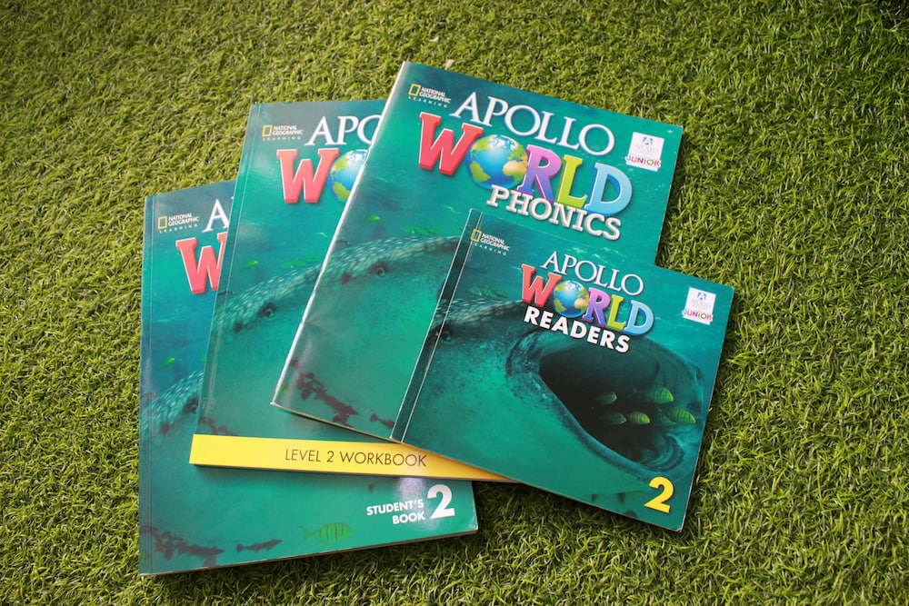 Khóa học tiếng Anh của học viên Primary sử dụng giáo trình Apollo World (6 cấp độ), mỗi cấp độ bao gồm: