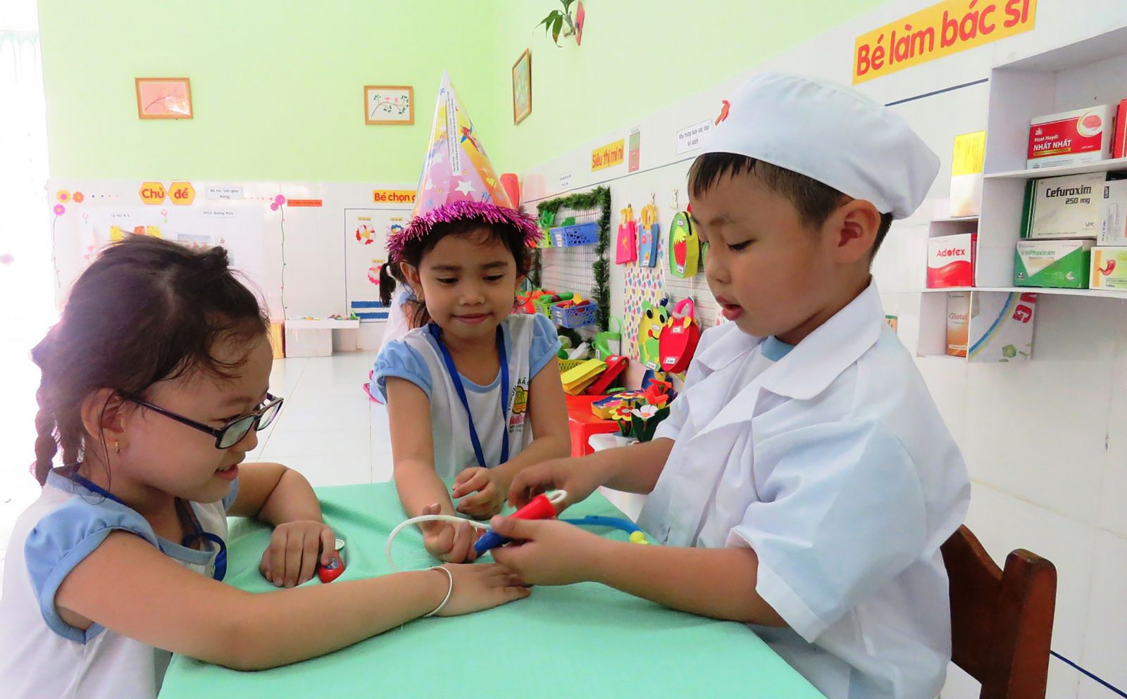 Tại trường Mầm non, các bé được chơi các trò chơi hàng ngày không cảm thấy chán